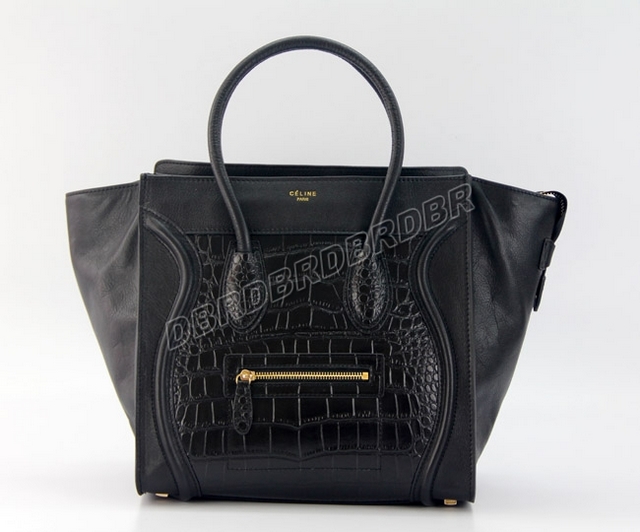 Celine Luggage Phantom Square ToteBlack leather with black crocodile