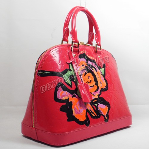 Red Monogram Vernis Roses leather