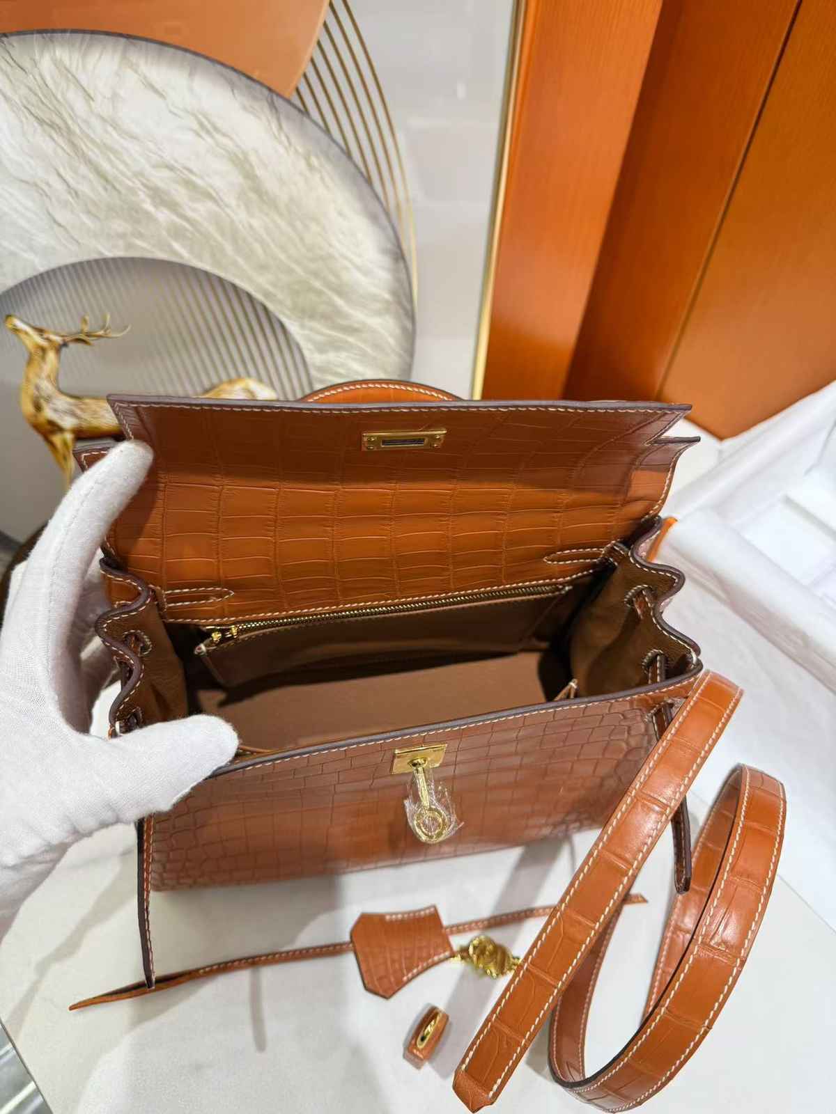 Genuine crocodile leather;