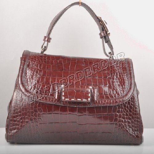 Fendi Silvana SatchelChestnut brown crocodile embossed leather