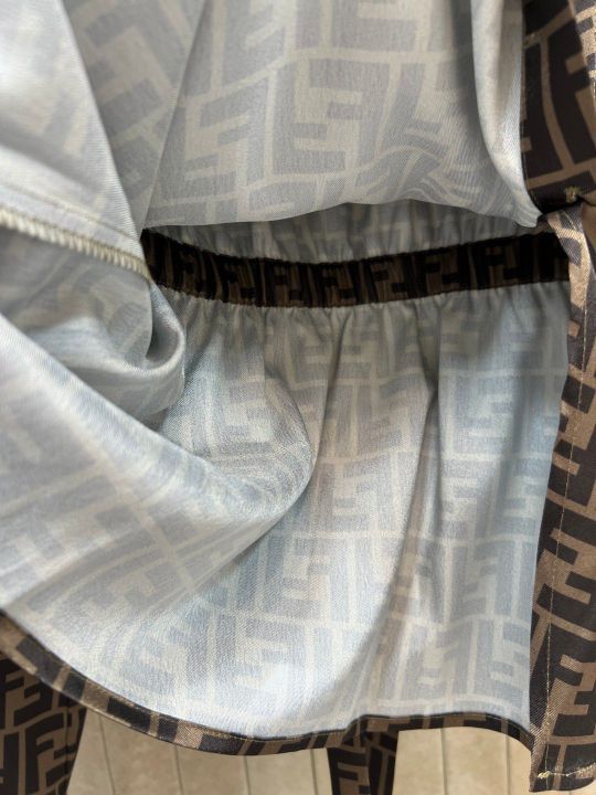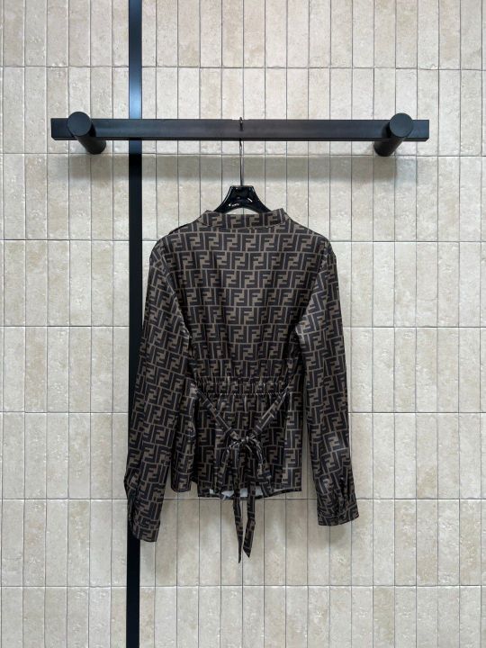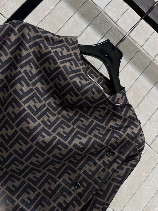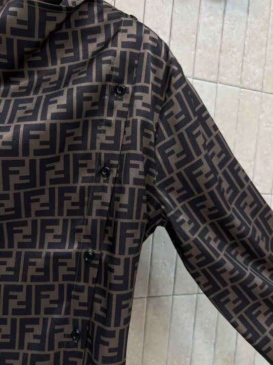 - FENDI 26 spring and summer new FF presbyopic shirt is soft and silky and has a full drop. It's super comfortable to wear! Full-printed FF presbyopic pattern, ultra-high recognition, luxurious, full-fledged loose version + rear lace design, casual and exquisite commuting, can easily control the light and luxurious temperament every day, must-have with simple trousers or skirts. Easily create a high-end feel to wear